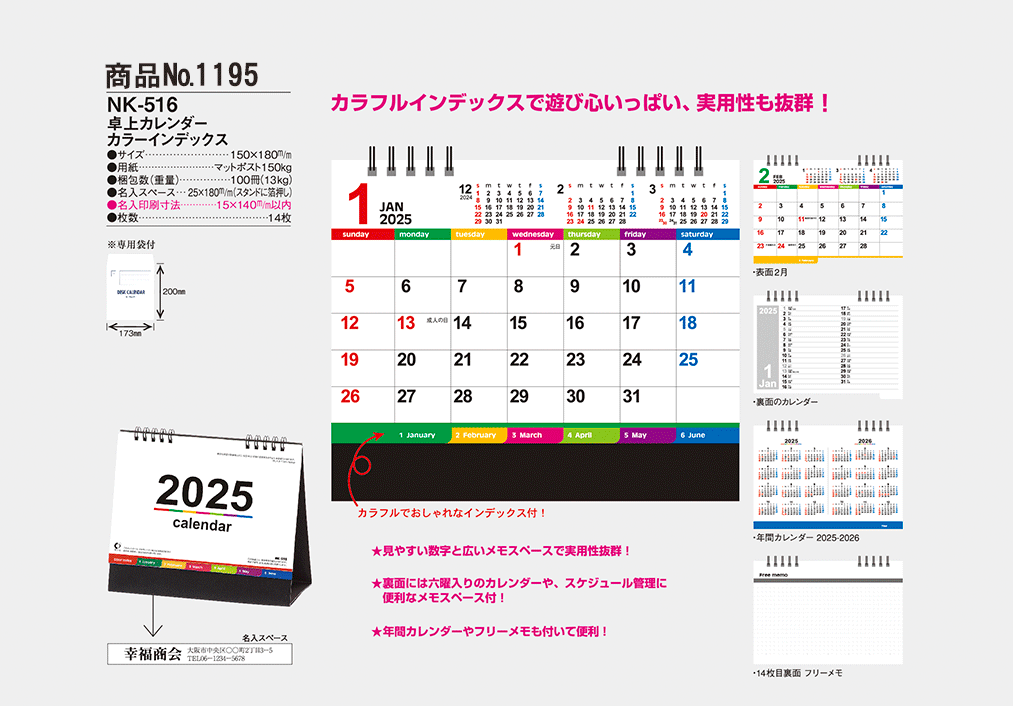 Ëè·î¥«¥é¥Õ¥ë¤Ê¥¤¥ó¥Ç¥Ã¥¯¥¹¤¬ÉÕ¤¤¤Æ¡¢¤á¤¯¤ê¤ä¤¹¤¯Í·¤Ó¿´¤¤¤Ã¤Ñ¤¤¤Î¥«¥ì¥ó¥À¡¼¡£¸«¤ä¤¹¤¤¿ô»ú¤È¹¤¤¥á¥â¥¹¥Ú¡¼¥¹¤Ç¥«¥¸¥å¥¢¥ë¤Ê¤Î¤Ë¼ÂÍÑÀ¤âÈ´·²¡ª